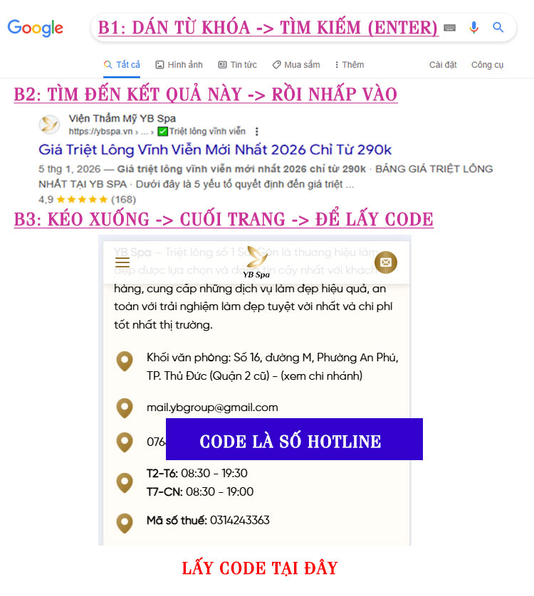 Bước 2: Sau đó, Tìm đến kết quả của trang: ybspa.vn và nhấp vào.